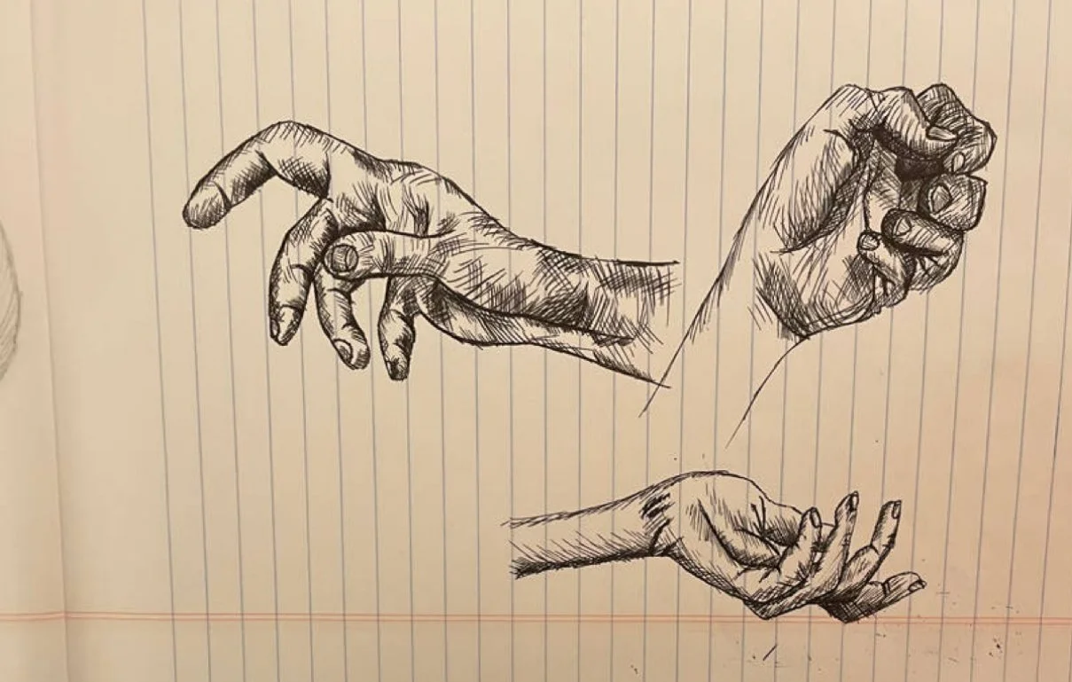 Erika Lancaster | https://www.erikalancaster.com/art-blog/shading-a-hand-using-pen-and-ink and Kara Hammond | https://karahammondart.com/2021/03/05/hand-studies-in-ink/