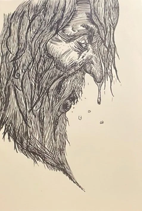It was really hard for me to stay focused and engaged staring at a screen for 6-8 hours a day, so I took to “telehealth doodling.” I thought it was quirky, so I started posting them to Facebook as a “here’s how I kept myself focused today!” kind of thing. I was surprised when my posts got positive feedback—a lot of folks expressed things like “I didn’t know you could draw!” and every so often someone would ask if they could buy one of my telehealth doodles. For a while, I really didn’t know what to do with that feedback but, it was flattering and encouraged me to keep going. For most of my “telehealth doodle” stage I used either notebook paper or a small journal, and either a ballpoint pen or a pilot pen because those were the materials I always had at my desk!